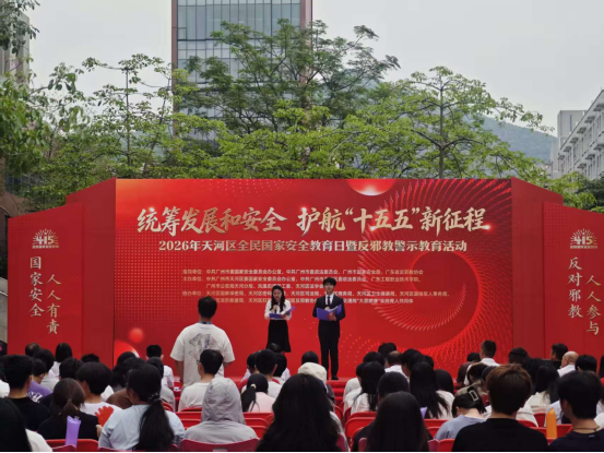 4月15日,也即第十一个全民国家安全教育日,为深入践行总体国家安全观,全面宣传国家安全法律法规,深化反邪教警示教育,天河区委国安办、天河区委政法委、天河区法学会联合多部门,在广东工程职业技术学院主会场及多所高校、街道分会场同步开展2026年天河区全民国家安全教育日暨反邪教警示教育系列活动,以沉浸式、互动式、体验式宣传,有效增强全民国家安全意识,让安全理念入脑入心、走深走实。