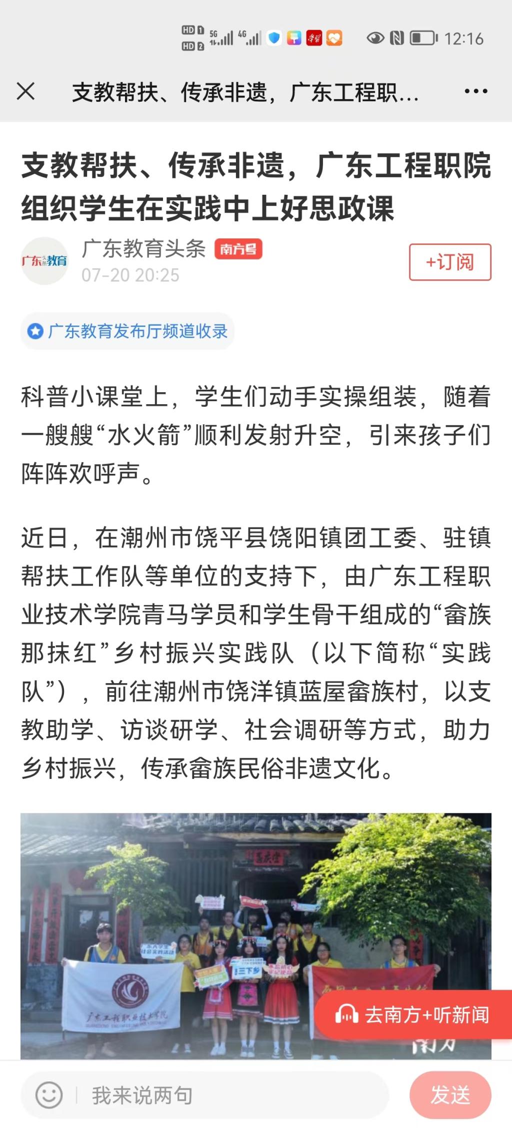 【南方+】广东教育头条:支教帮扶、传承非遗,广东工程职院组织学生在实践中上好思政课