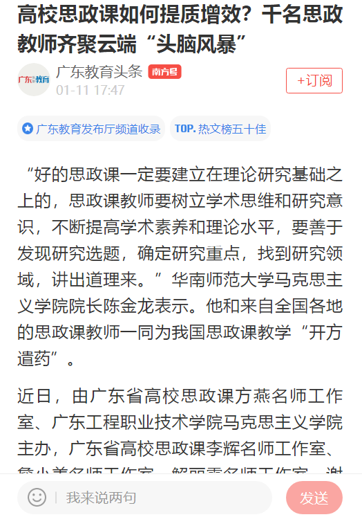 【南方日报】广东教育头条:高校思政课如何提质增效?千名思政教师齐聚云端“头脑风暴”