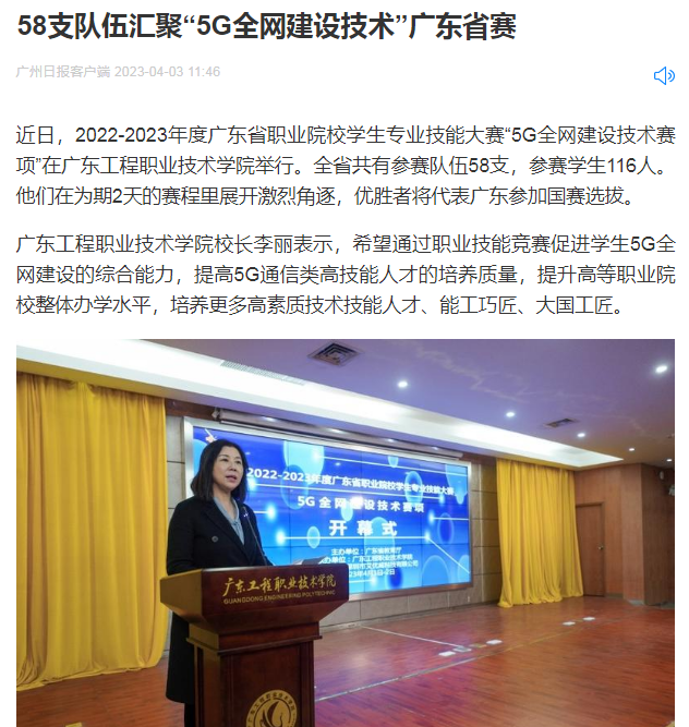 【广州日报】:58支队伍汇聚“5G全网建设技术”广东省赛