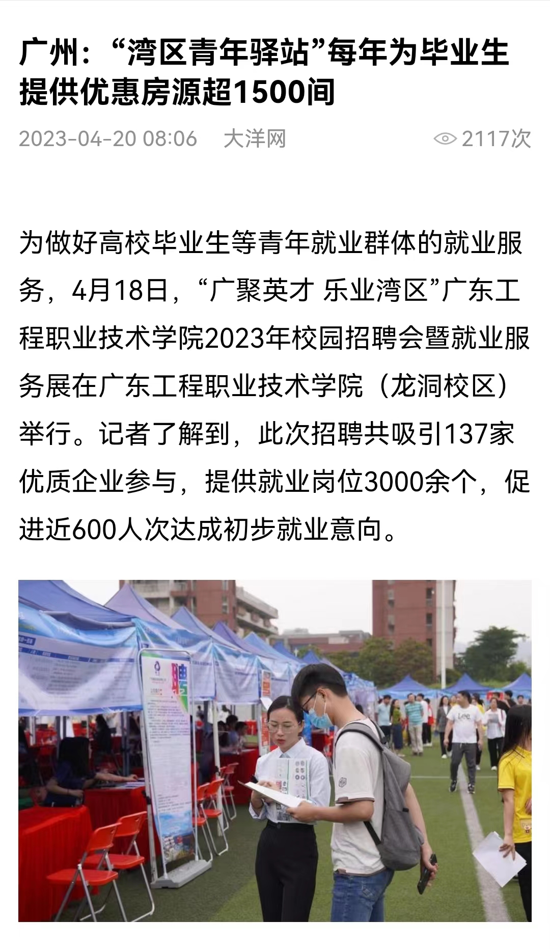 【广州日报】:广州:“湾区青年驿站”每年为毕业生提供优惠房源超1500间