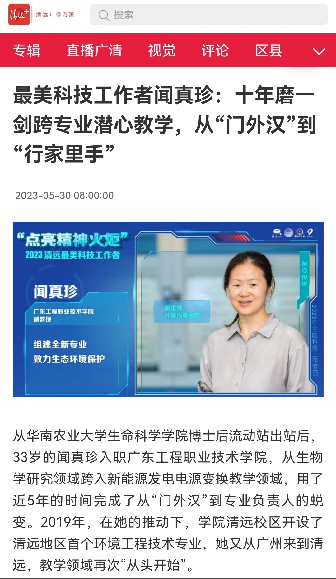 【清远日报】:最美科技工作者闻真珍:十年磨一剑跨专业潜心教学,从“门外汉”到“行家里手”
