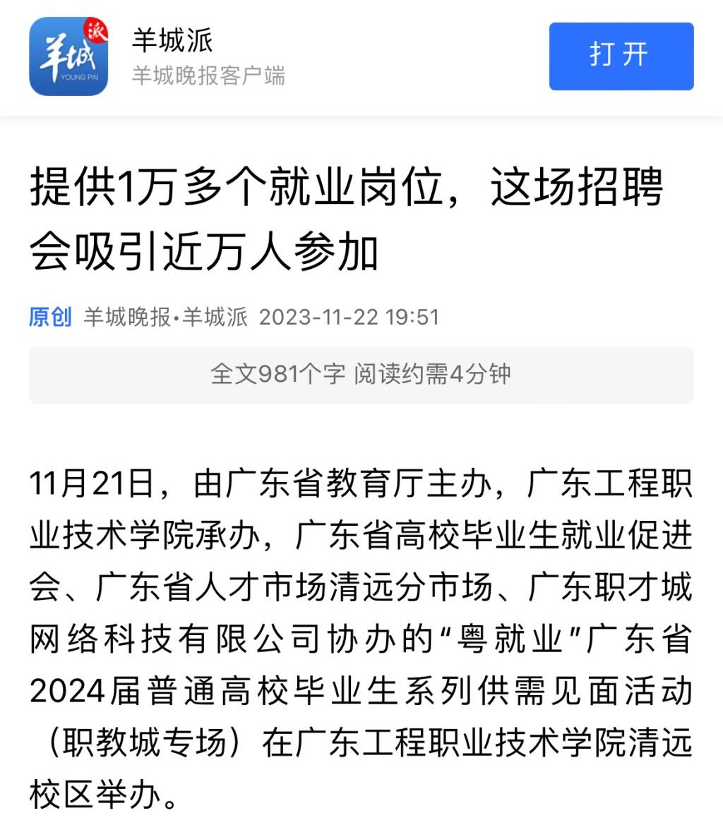 【羊城晚报】:提供1万多个就业岗位,这场招聘会吸引近万人参加