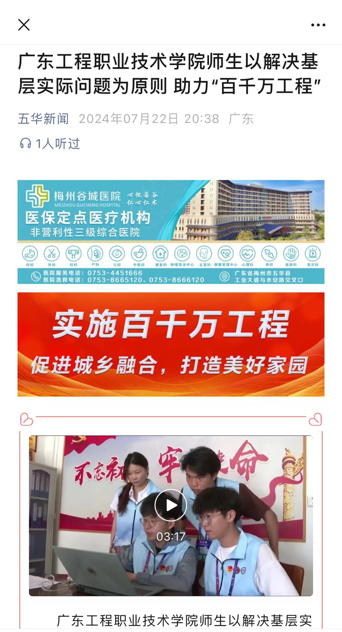 【五华新闻】:广东工程职业技术学院师生以解决基层实际问题为原则 助力“百千万工程”
