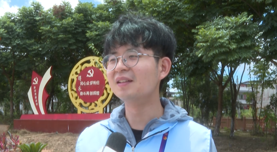 龙村镇湖中村村民 钟任洋:(感觉)相当好,他们为湖中村做出很大的贡献,像小公园的绘画,都不遗余力的画的非常好,为大学生志愿者点赞。】