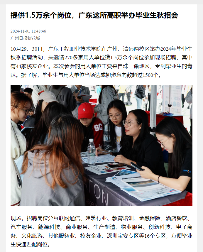 【广州日报】提供1.5万余个岗位,广东这所高职举办毕业生秋招会