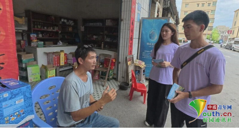 图为团队学生携带问卷和定制宣传册深入农家走访。薛志铭 供图