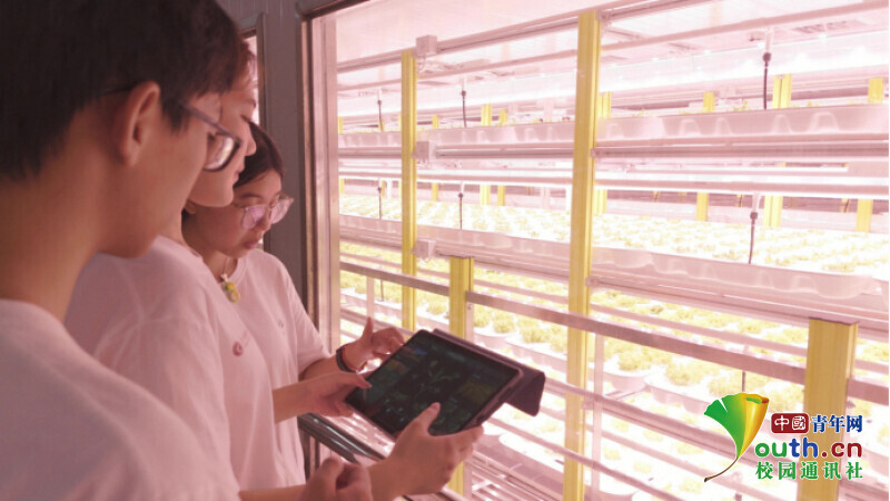 图为团队学生进行智能操控并了解植物的生长过程。崔志明 供图