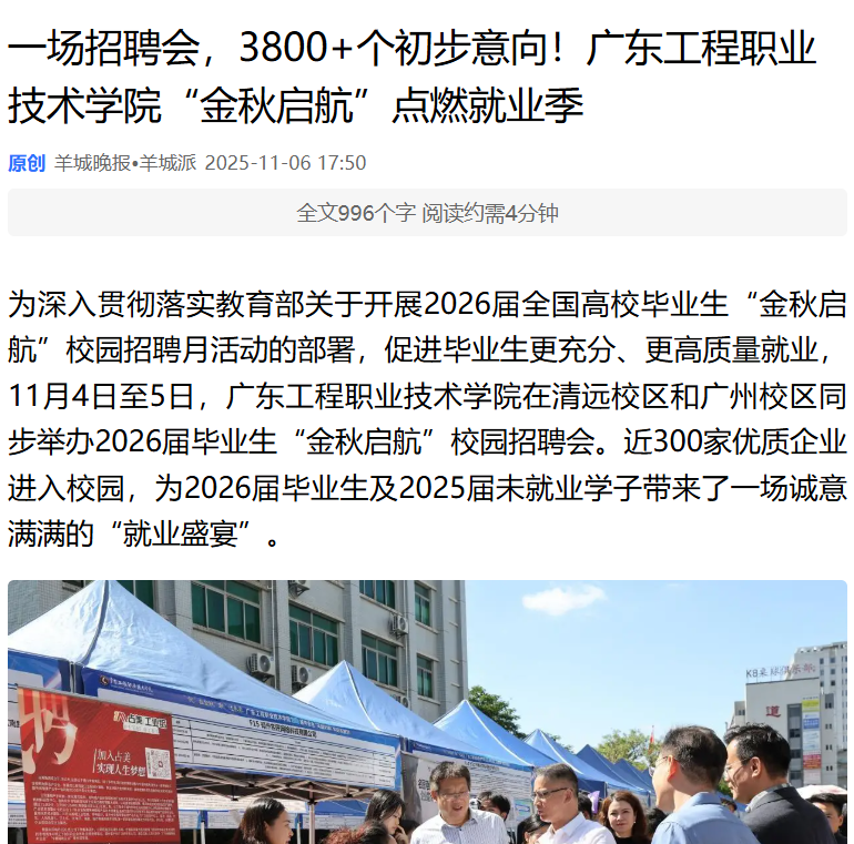 【羊城晚报】一场招聘会,3800+个初步意向!广东工程职业技术学院“金秋启航”点燃就业季