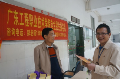 在各校的自主招生宣传会上,招生宣传工作人员介绍了我校的办学特色、办学成果、专业设置等基本情况,详细解读了我校2014年自主招生的特点、形式、报名办法、录取规则,并耐心回答了每位师生关心的问题。各中职学校领导和师生反应热烈,纷纷表示:广东工程职业技术学院是我省实力强、影响大、社会形象好的知名高职院校,自主招生为广大中职毕业生报考升学开辟了新途径。许多同学表示他们将珍惜这难得的机遇,踊跃报名,并积极准备考试。