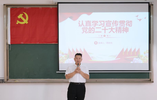 党委书记周奇舟以《认真学习宣传贯彻党的二十大精神》为题进行党课授课,周奇舟书记以党的光辉历史引入授课主题,从过去五年的工作和新时代十年的伟大变革、开辟马克思主义中国化时代化新境界、新时代新征程中国共产党的使命任务、完整解读党的二十大报告十二个战略部署四个方面诠释了认真学习宣传贯彻党的二十大精神重要性。周奇舟书记勉励本期培训班学员要做有理想、敢担当、能吃苦、肯奋斗的新时代好青年,为强国建设、民族复兴挺膺担当,继续创造无愧于时代、无愧于人民、无愧于历史的新的青春业绩。