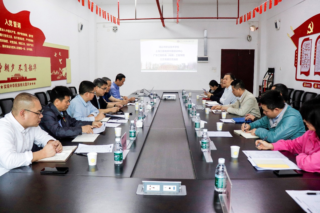 自去年5月三方党建共建以来,三方交流联系密切,成效明显,去年与上海三菱电梯联合成功申报现代学徒试点。本次交流焦点就是如何落实好校企校贯通现代学徒制人才培养方案和深化党建合作。与会代表坦诚交流,提出了多项合理化建议。同时,上海三菱华南培训中心党支部与我院教师党支部达成结对意向。