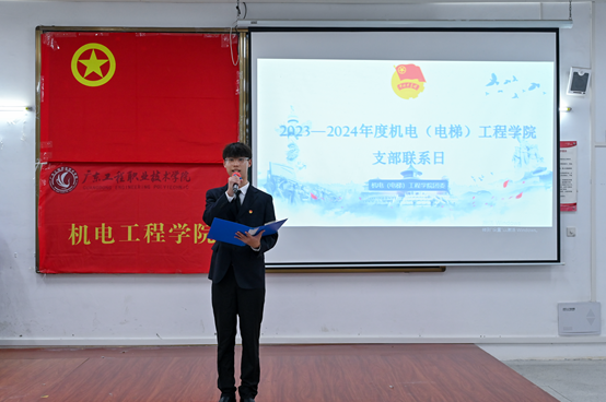 为深入学习宣传贯彻习近平总书记五四青年节对全国广大青年寄语精神,深化开展基层团支部建设活动,增强团员对团组织的认同感和归属感。机电(电梯)工程学院团支部联系日大会于5月17日下午在省职教城校区Q1-105顺利举行。机电(电梯)工程学院党委书记周奇舟,学院组织员李菁凤老师、团委书记刘鑫老师、环境工程技术专业朱思齐老师,学院辅导员老师以及2023级环境工程技术A班支部委员会、2023级数字化设计与制造技术B班支部委员会全体成员参加了本次活动。