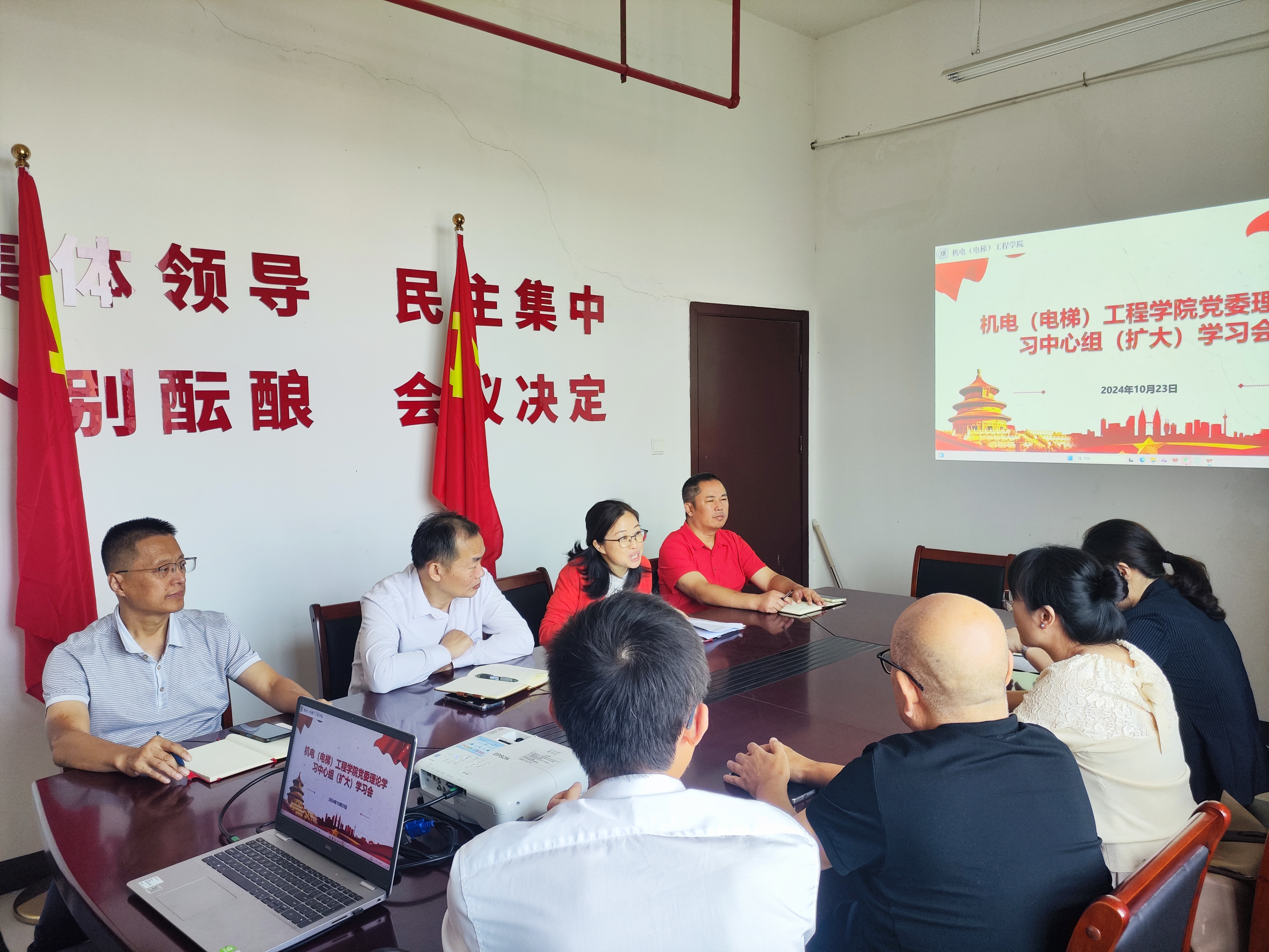 为进一步贯彻落实党的统一战线方针政策,推动学院统战工作高质量发展,10月23日上午,机电(电梯)工程学院召开党委理论学习中心组(扩大)学习会—专题学习习近平总书记关于做好新时代党的统一战线工作的重要思想。机电(电梯)工程学院党委委员、领导班子成员、党外人士代表、组织员出席本次会议,会议由党委副书记张荣主持。