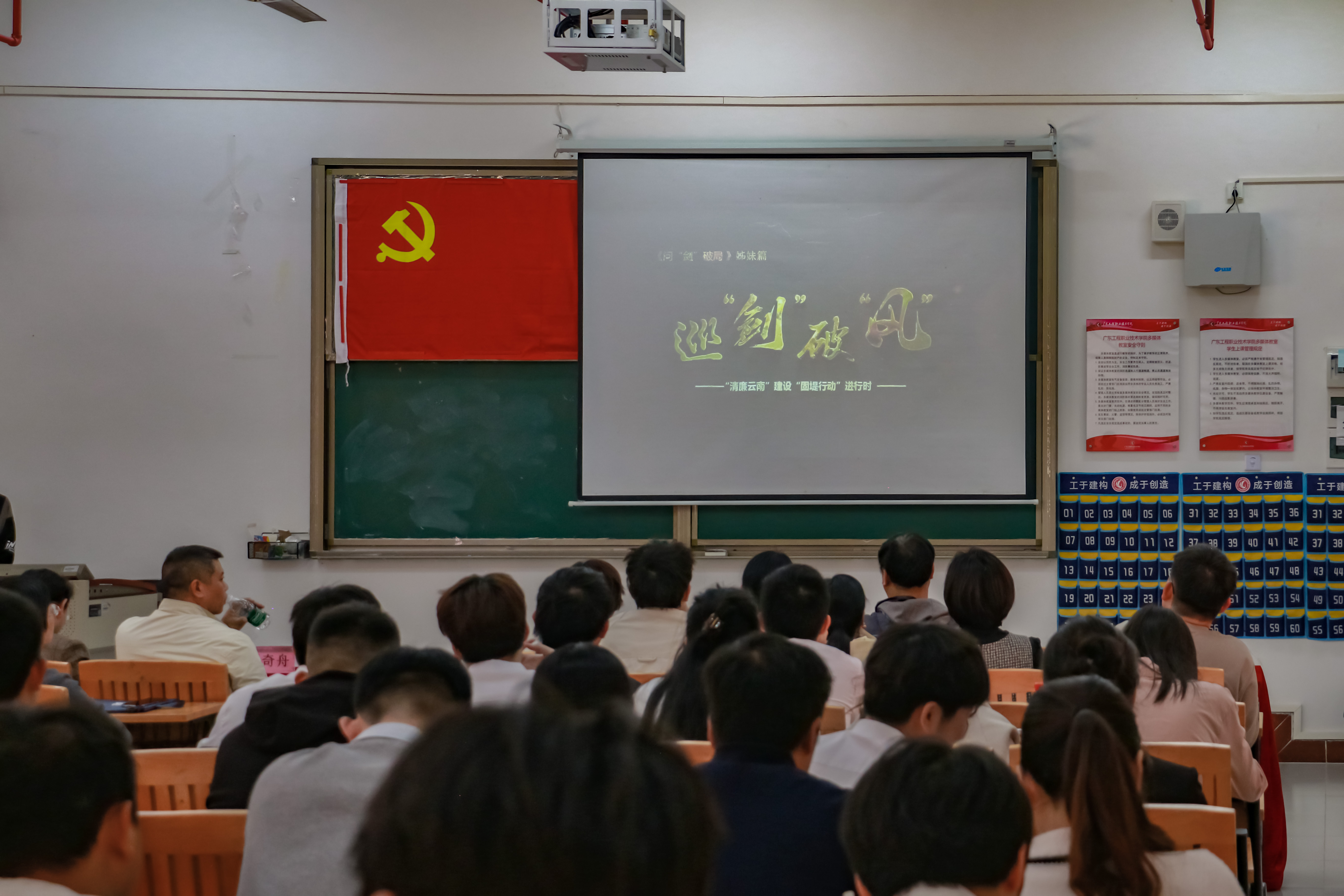为加强全体党员对党规党纪的敬畏之心,会上组织全体党员集体观看警示教育专题片:杜绝违规吃喝——《巡“剑”破“风”》,各位党员感受颇深。