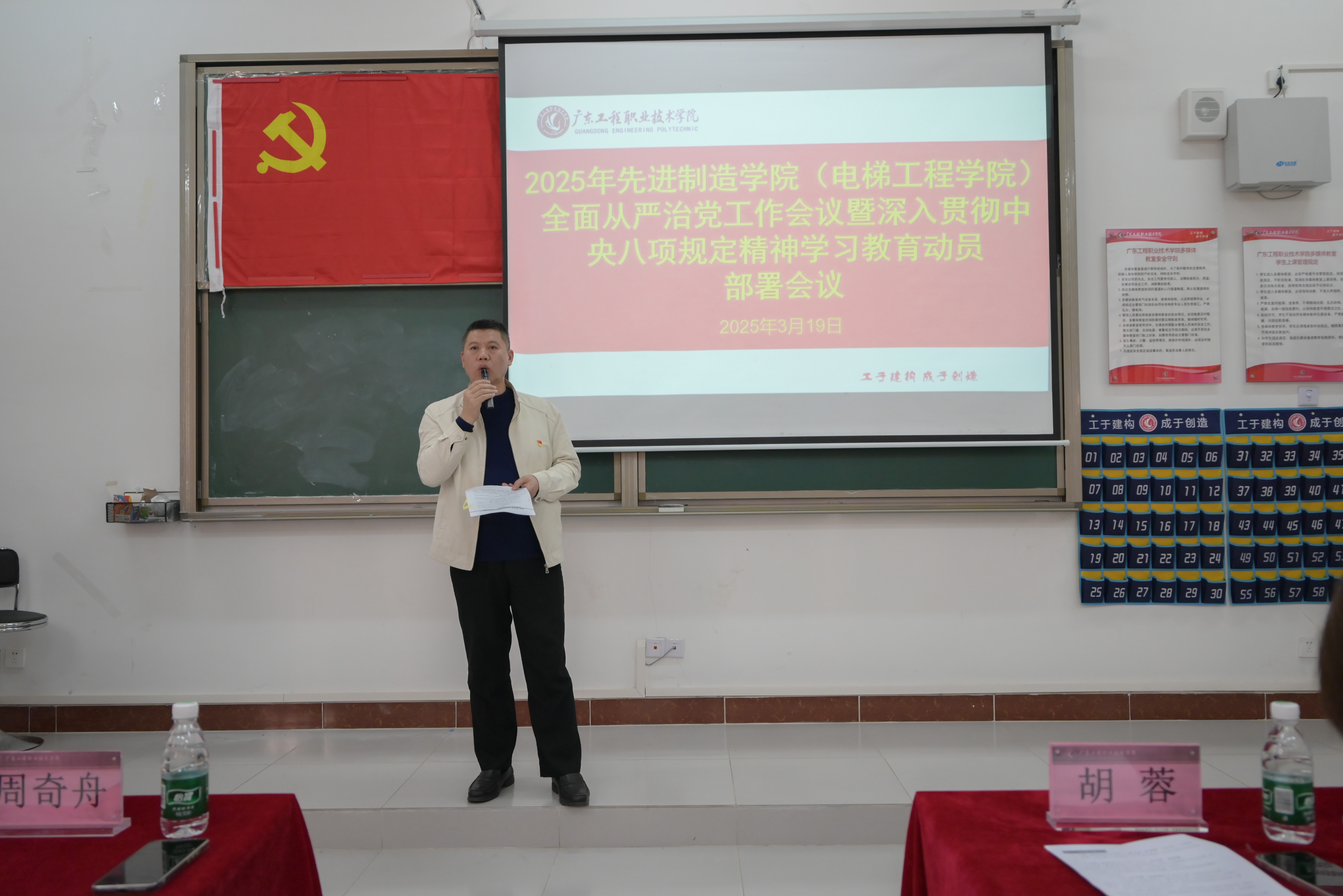 为进一步加强党的纪律建设、推动全面从严治党向纵深发展。根据我校2025年全面从严治党工作会议暨深入贯彻中央八项规定精神学习教育动员部署会议内容,先进制造学院(电梯工程学院)党委于3月19日在清远校区教学楼Q1-114召开了2025年全面从严治党工作会议暨深入贯彻中央八项规定精神学习教育动员部署会议。本次会议由周奇舟书记主持。