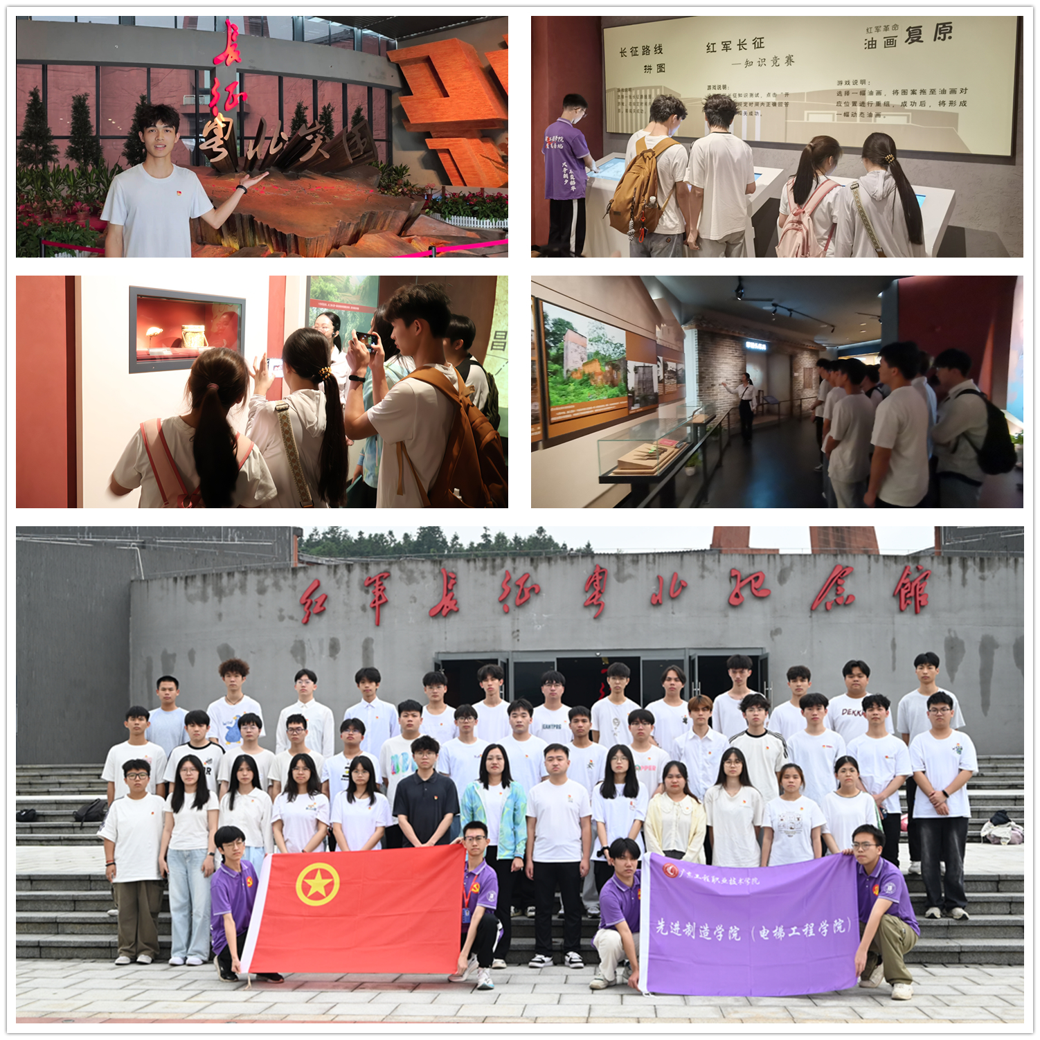 5月16日,支部组织师生党员代表前往韶关红军长征粤北纪念馆和省级爱国教育基地双峰寨,通过参观学习、实地走访、红色打卡、心得分享等方式开展红色爱国教育。在红军长征粤北纪念馆,一件件珍贵文物、一幅幅历史照片、一幕幕场景复原,生动再现了红军长征经过粤北时的艰苦历程和英勇事迹,在场馆讲解员的带领下,重温了中央红军长征在粤北的21天突围转移突破国民党设置的三道封锁线的光辉历史,感悟粤北人民与红军紧紧相依的鱼水情谊,师生党员驻足观看,用青春的方式追寻红色记忆,感悟长征精神,接受爱国教育。