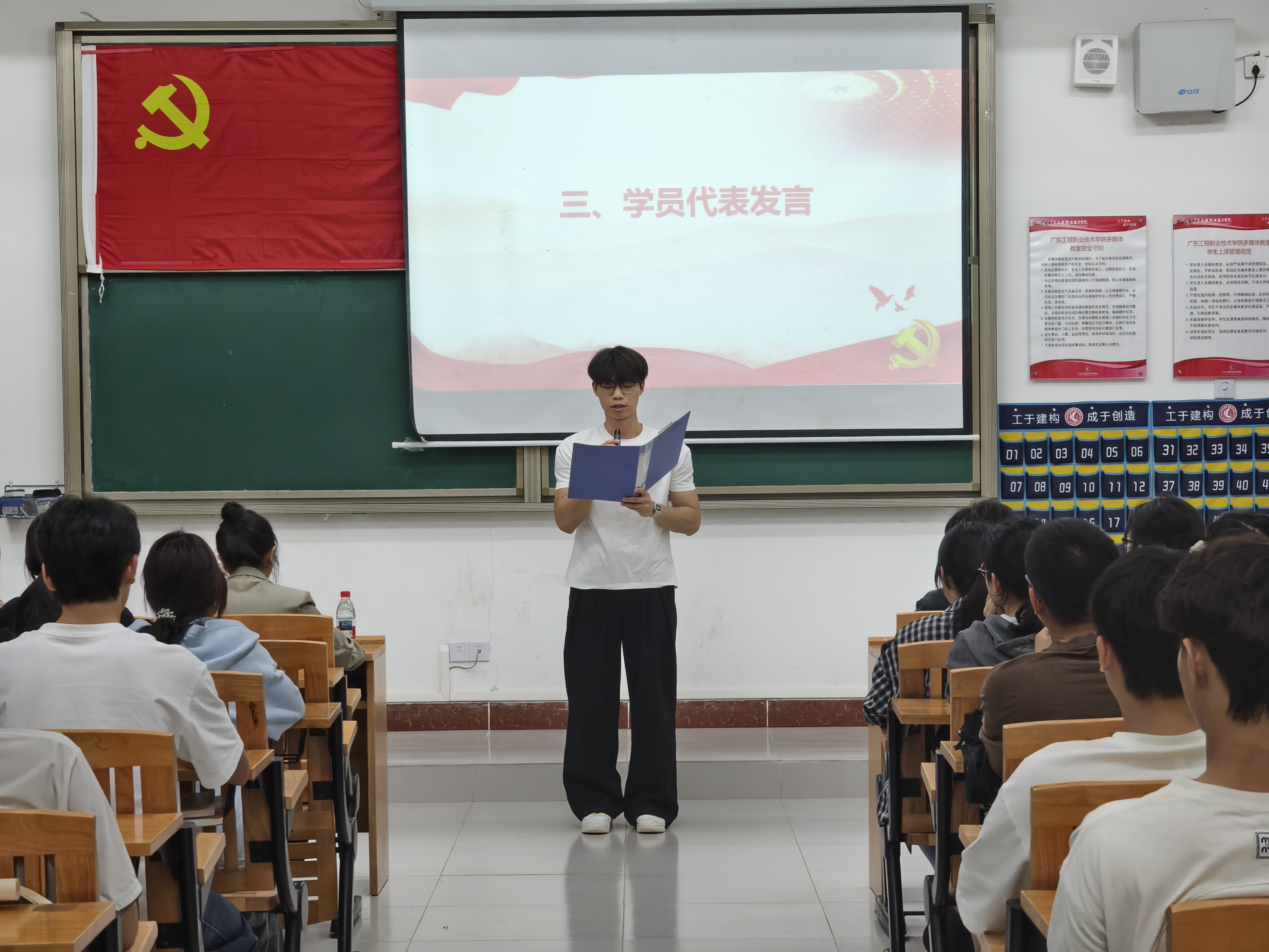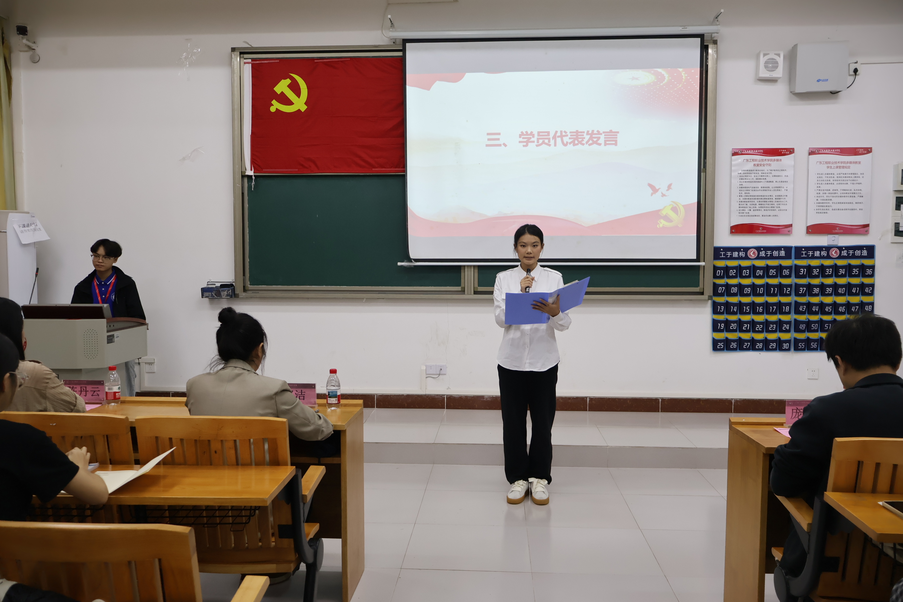 仪式在庄严的国歌声中拉开帷幕。组织员李菁凤介绍了本期学习班的具体安排和学习要求。学生代表刘棋兴、陈辉依次发言,表达了积极向党组织靠拢的坚定决心和认真完成培训学习的承诺。