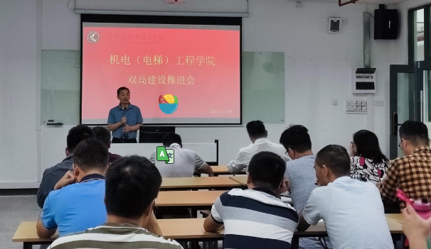 为深入贯彻落实学校“双高”建设目标任务,进一步推进“双高”建设任务合理、顺利完成,11月9日机电(电梯)工程学院在二号教学楼2210召开了“双高”建设工作推进会。出席本次会议的有机电(电梯)工程学院全体教职工。本次会议由吕文献副院长主持。