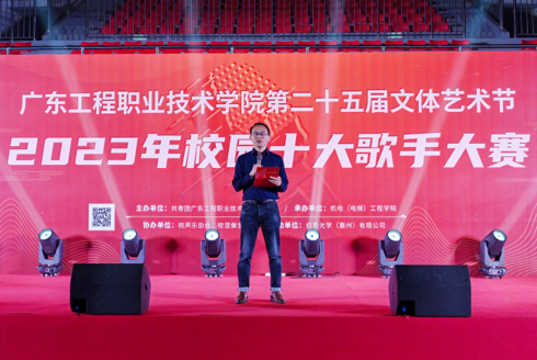 校团委书记刘山发致开幕辞。随后,吴志敏副校长宣布:“广东工程职业技术学院2023年校园十大歌手大赛总决赛正式开始”。