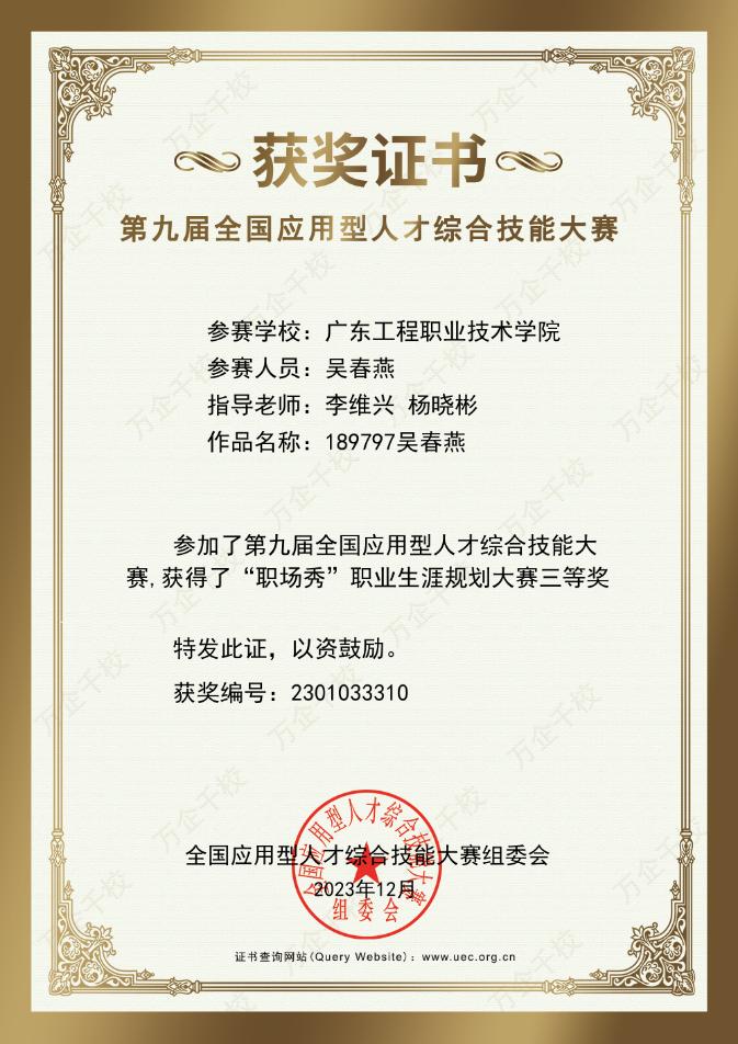 在本次大赛中,我院荣获“优秀组织奖”,院长曹立生、党委副书记张荣荣获“先进个人”称号。我院党委书记周奇舟、专任老师李维兴及杨晓彬、辅导员刘志鹏、曾莹莹指导2022级智能网联汽车技术班多名学生在本次决赛中荣获二等奖和三等奖。