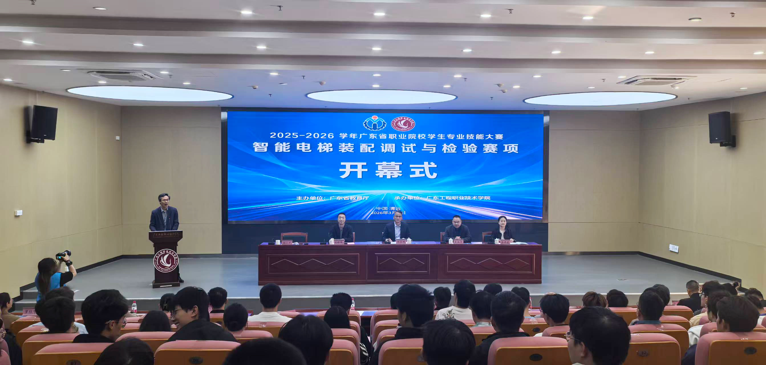3月6日至7日,2025—2026学年广东省职业院校学生专业技能大赛智能电梯装配调试与检验赛项(高职组)在广东工程职业技术学院省职教城校区顺利举行。本次大赛由广东省教育厅主办,此次比赛的智能电梯装配调试与检验赛项属于装备制造赛道,涵盖高职院校机械设计制造类、机电装备类及自动化类专业,共吸引来自全省31所职业院校的领队、指导老师及参赛选手参加。