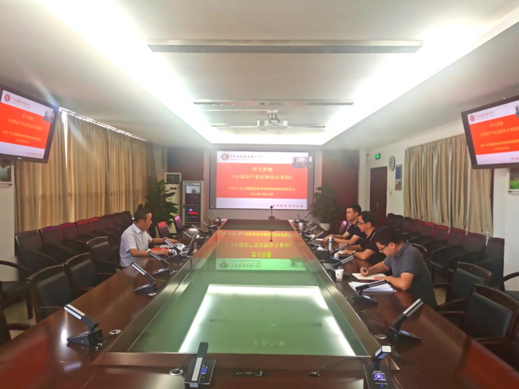 为贯彻落实《关于在全党开展党纪学习教育的通知》精神,进一步加强党的纪律建设,教育引导纪检队伍学纪、知纪、明纪、守纪。5月30日上午,学校纪委在广州校区办公楼615室、省职教城校区办公楼411室开展《中国共产党纪律处分条例》专题学习。党委副书记、纪委书记徐振昌主持会议并领学,全体纪委委员、纪检室工作人员参加了此次学习。