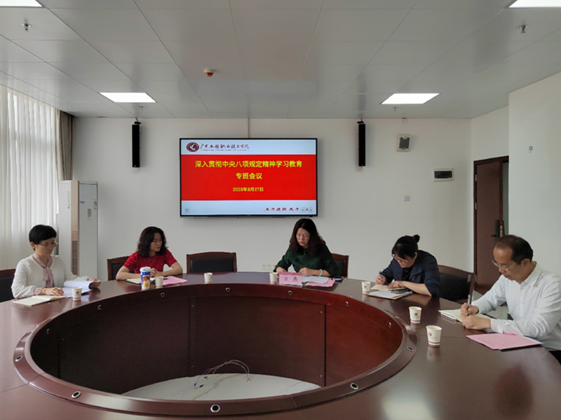 3月27日上午,学校在省职教城校区办公楼618室召开深入贯彻中央八项规定精神学习教育工作专班办公室会议。学校党委副书记方燕、专班办公室全体成员参加了会议。会议由组织统战部部长佘细花主持。