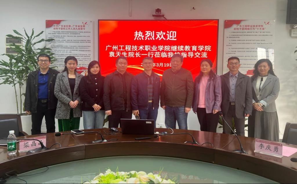 3月19日下午,广州工程技术职业学院继续教育学院院长袁天生一行5人到我校交流。继续教育学院院长胡勇、副院长孔祥星及相关科室人员参加交流。