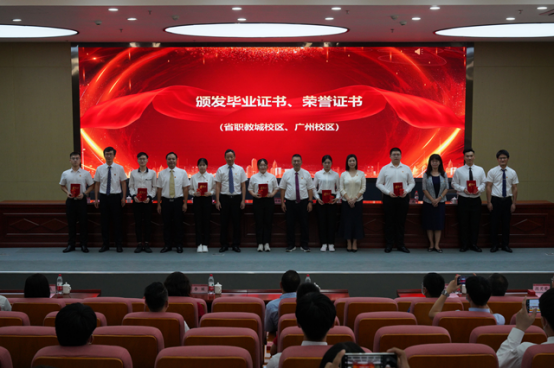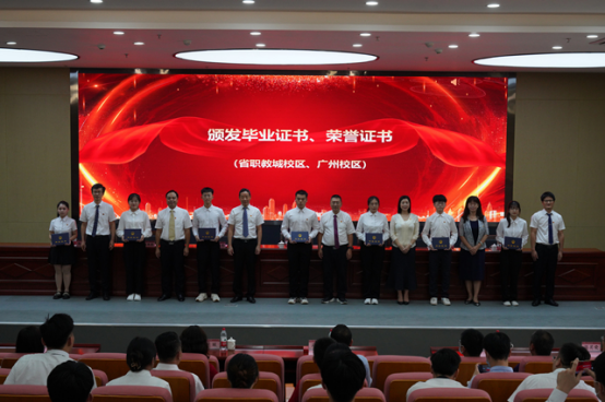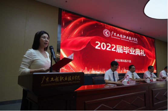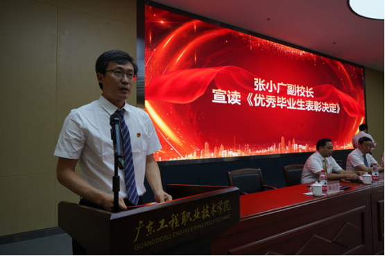 张小广副校长宣读了《关于表彰广东工程职业技术学院2022届优秀毕业生的决定》。学校领导在主会场为毕业生代表颁奖。广州分会场和湛江分会场同时举行颁奖仪式。