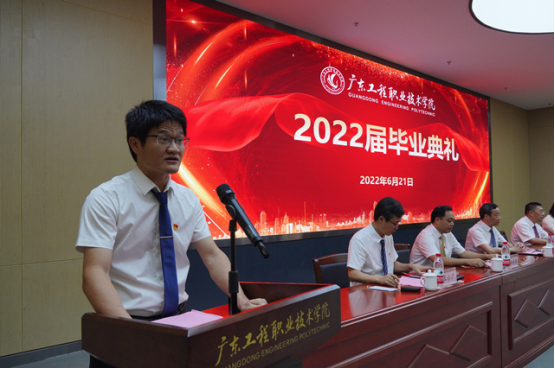 最后,吴琦琳书记、李丽校长深情寄语2022届毕业生。典礼在广东工程职业技术学院校歌《筑梦同行》中落下帷幕,同学们在依依不舍中互道珍重,奔向新的征程。
