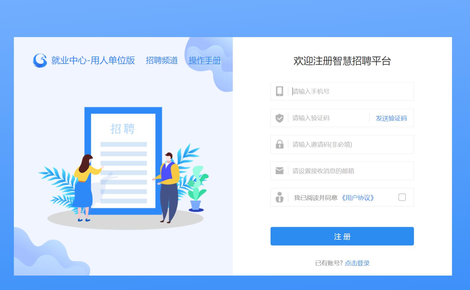 2. 点击智慧招聘栏目下用人单位招聘