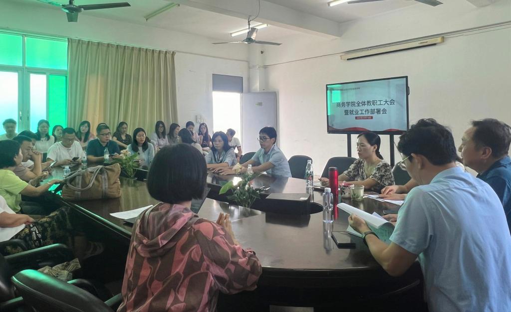 为进一步加强对当前就业形势的分析研判,推进商务学院2024届毕业生就业工作有关问题解决,谋划2025届毕业生就业工作举措,推进学院就业工作再上新台阶,2024年10月17日,商务学院在教学楼1103会议室召开了2025届就业工作推进会,学院全体教职工参加会议。