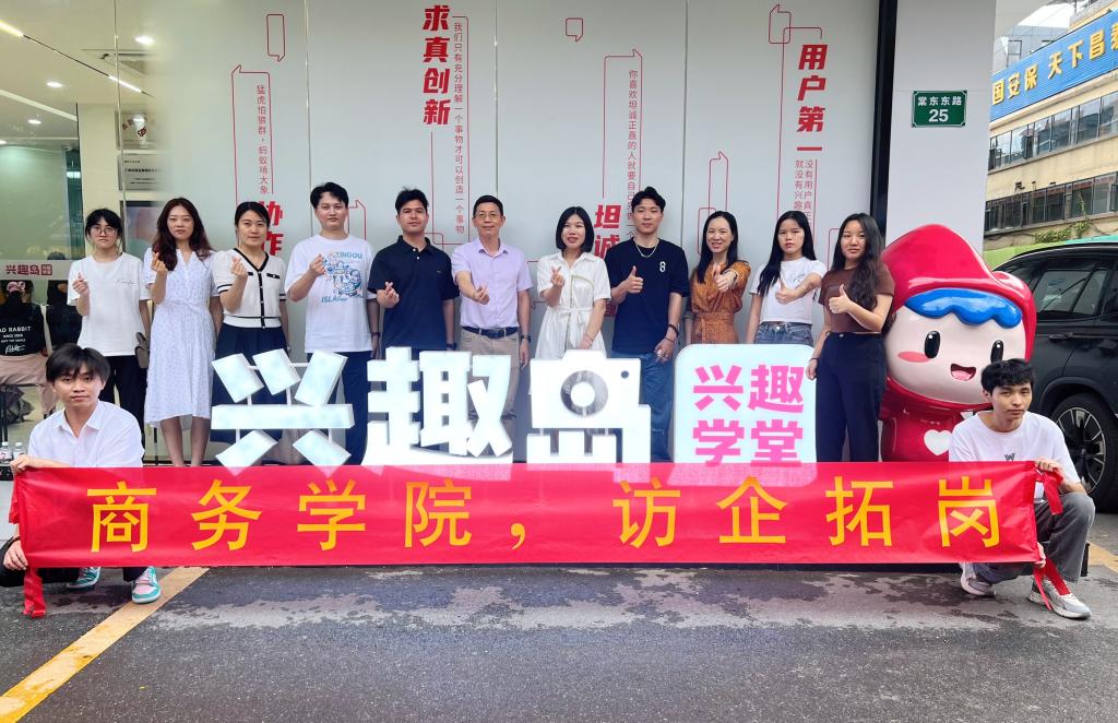 为加强校企合作、深化访企拓岗促就业工作内涵,进一步促进学生充分就业、高质量就业,4月25日,商务学院党委书记吴华长带领2024届毕业班师生一行赴广州兴趣岛信息科技有限公司开展访企拓岗促就业专项行动。兴趣岛人力资源副总监吕晓晓、人力资源主管蔡伟强,现任职于兴趣岛的我校2020届,2015届两位校友谢佳耿、徐镇佳等人参加了此次活动。