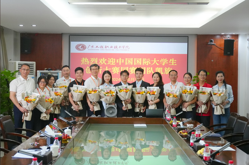 学校高度重视本届大赛,自4月份大赛启动以来,成立了由创新创业学院、教务部、科技部、学生工作部、团委等有关职能部门以及各二级学院组成的大赛工作组。总决赛现场比赛期间,学校党委书记叶忠明和副校长张小广全程带队参赛,让参赛团队深受鼓舞、倍感振奋。在项目团队备赛期间,校长李丽和副校长吴志敏亲临现场指导参赛项目,为参赛选手加油鼓劲,勉励他们在大赛中充分展现广东工程学子风采。大赛结束第二天,学校在广州校区组织召开座谈会,欢迎参赛团队载誉归来,叶忠明书记和李丽校长在座谈会上向参赛团队指导老师和选手们送上鲜花,表达祝贺和慰问之情,并号召全校师生以获奖团队为榜样,发扬拼搏精神,奋发有为,助力学校“双高”建设和高质量发展。