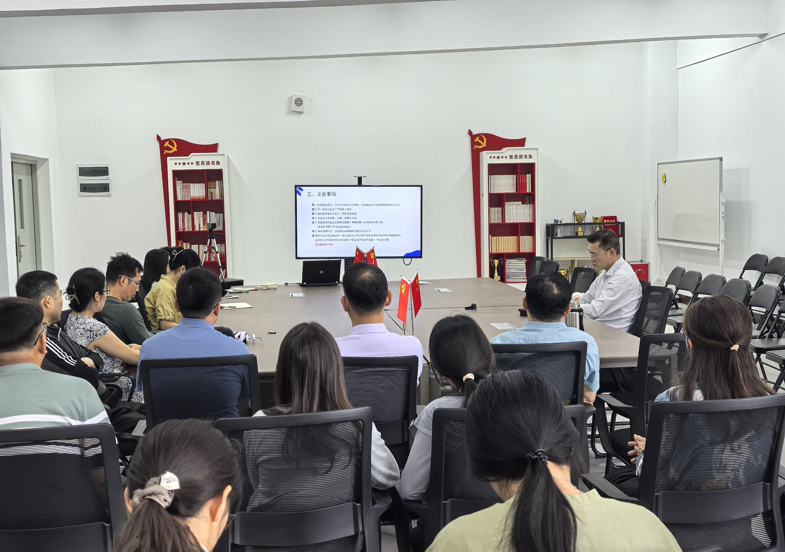 最后,学院党委书记张华提出三点要求:一是提高政治站位,形成合力,把就业工作成效作为检验教育成果的重要标尺;二是将思政教育贯穿就业工作全过程,重点加强就业安全教育,完善风险防控体系,确保就业工作平稳有序推进;三是建立健全就业工作跟踪反馈机制,及时调整优化就业工作策略,强化就业监测统计,确保数据真实准确。