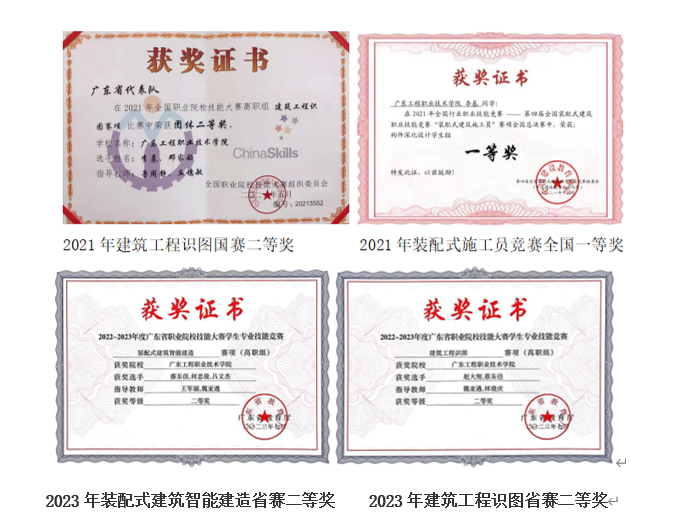 本专业拥有教育部认定的建筑工程技术专业(群)“双师型”教师培养培训基地和广东省级实训基地各1个,包括建筑材料、BIM技术应用等实体和虚拟实训室,与远大住工集团、广东华标工程检测中心等企业共建校内外实训基地多处,满足学生实训、实习的需求。拥有土建八大员培训考点和中国图学会BIM技能等级考证点,承办了2021-2022年度等3届广东省职业院校建筑工程识图竞赛等。