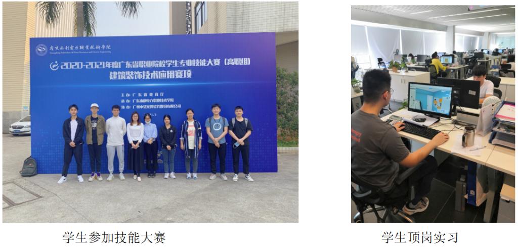 依托专业群省级实训基地,拥有BIM技术应用实训室、建筑室内项目设计实训室、建筑工程绘图实训室等,成立了建筑室内教师工作室1个,联合和能人居、三维家等共建校外实训基地一批,满足学生实习实训、就业创业要求。在2021年成立了广东省内首家装配化装修产业学院,新营造产业学院的成立将在深化校企“多主体”育人、校企合作开发课程、共建实习实训基地、建设高水平双师队伍、搭建产学研服务平台等多方面展开合作,共同培育涵盖建筑、室内、工程技术、设备等专业的高素质技术技能型装配式装修人才,实现专业集群与产业的精准对接。