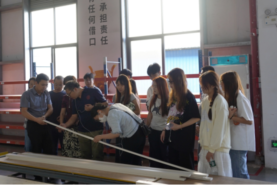 活动中,卡诺亚家居研究院院长陈勇刚详细地介绍了公司的发展历程、企业文化、产品种类和市场布局,对工作环境、人才需求、岗位设置等方面进行讲解,并带领师生实地参观了生产车间、成品仓库、实验质检室、产品样板间等场所。深入现代化的生产前沿,师生们均更加直观、细致地感受到定制家居各类产品的生产过程,受益匪浅。这种沉浸式体验教学的生动实践使得学生对专业知识和实践应用也有了更深刻的认知,是落实校企合作的重要措施。