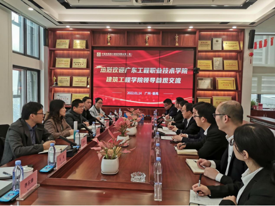 2022年1月14日上午,建筑工程学院院长王洪波、党总支书记钟婷、副院长赵学问、党总支副书记晋保山和部分骨干教师前往中建四局第六建设有限公司参观交流。