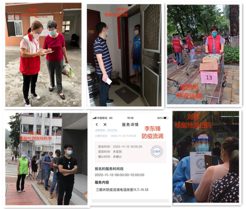 在这场没有硝烟的战场,学生党员同样积极参与到校内外疫情防控中,参加社区流调工作、做好核酸检测服务,更有i志愿服务时长超过1000小时的同志,他们都在力所能及的范围发光发热。
