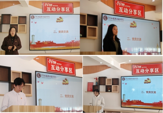 在交流环节,大家各抒己见,有的结合自己参加“一带一路 共建繁荣”主题宣讲内容分享理解和感悟,有的根据第一议题内容提出高校学生践行方式,有的对使用“学习强国”学习平台进行经验分享,思想在交流中碰撞出智慧的火花,进一步深化了对党性修养的认识。