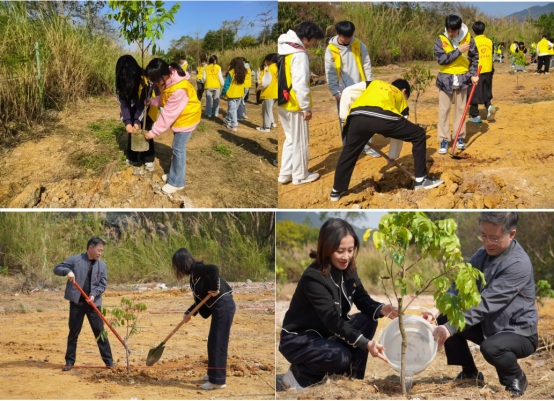 春风拂绿催新象,植树造林正当时。2025年3月19日,建筑工程学院党委党建共建单位中共东城街道新桥总支部委员会(简称“新桥党总支”),中共清远市文化广电旅游体育局第二支部委员会(简称“机关二支部”)携手开展植树活动,以实际行动践行生态文明理念,为乡村振兴添绿赋能。