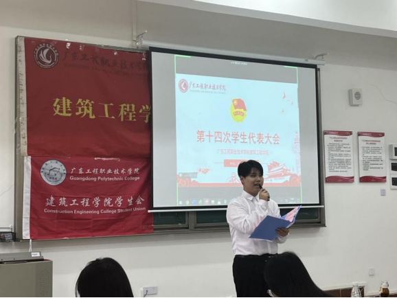 2022年11月4日下午,建筑工程学院第十四次学生代表大会在清远校区教学楼Q1-121举行。根据疫情防控防疫要求,本次大会采用线上及线下参会相结合的方式同步进行。参加本次大会的领导及嘉宾有建筑工程学院党总支书记钟婷、党总支副书记晋保山、酒店管理学院余乐老师、人工智能学院洪振鑫老师、建筑工程学院全体辅导员及85名学生代表。