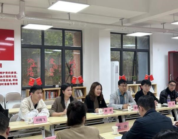 在学习交流会议上,机电工程学院副院长方友村详细介绍了学院的基本概况、专业特色以及育人成果。该院学工部主任及学生党支部书记陈诗作为参与“全省标杆院系”及“全国样板党支部”申报工作的主要成员,着重介绍了机电工程学院党总支及学生党支部的党建育人成果,分别从党建文化引领、特色工作案例以及组织生活创新等多个角度系统性地介绍了该院“五导育人”的党建文化品牌,并分享了一系列党建工作经验。在沟通交流环节中,我院领导老师也分享了党建工作及育人管理的做法,并就参观学习过程中的心得体会与疑问困惑与对方展开了热烈且融洽的讨论,交流之后双方都表示互有裨益。