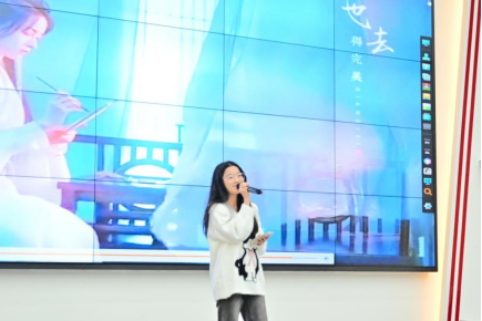 在中场休息间隙,公共服务学院陈盈盈同学为大家带来歌曲演唱《牵丝戏》,优美的歌声为紧张的比赛增添了一份轻松与愉悦,戏曲唱腔与诗词大会相得益彰。在互动环节,现场观众积极参与诗词知识问答,进一步增强了活动的趣味性和互动性。
