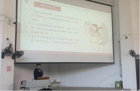 张育淞老师结合学生宿舍管理规定,从安全、卫生、文明三方面进行培训。他强调,宿舍安全需杜绝私拉电线、使用大功率电器、消防通道挂衣等行为;卫生管理需落实值日制度,保持宿舍整洁;文明相处则要求尊重室友隐私,遵守作息时间,避免噪音干扰。此外,张老师通过违规案例分析,强调晚熄灯、晚归、超载断电等问题的严重性,并详细说明恢复用电流程及违纪处分规定,警示学生严守纪律底线。