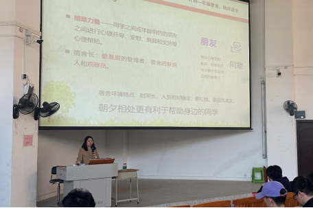 何少云老师以自助、他助、互助——关注同学心理健康”为主题,围绕宿舍长在心理健康工作中的角色展开培训。她强调,宿舍长作为学生心理健康的“第一观察员”,需关注同学的情绪变化与心理弱信号(如性情大变、行为异常、语言悲观等),并通过“六变三托”识别法及时发现潜在危机。同时,何老师建议宿舍长以真诚、共情的态度与同学沟通,必要时上报辅导员或寻求专业心理咨询支持,共同守护宿舍成员的心理健康。