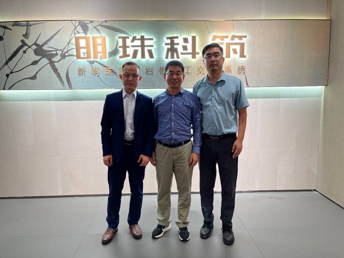 王洪波一行受到新明珠集团明珠科筑总经理贾世广的热情接待,贾世广带领王洪波一行参观了公司展厅,并介绍了岩板精工交付服务平台“明珠科筑”,“明珠科筑”可以提供从门店到家的运输、加工、铺贴、安装一站式服务,形成了整体服务体系优势。贾世广表示,“明珠科筑”目前也面临着一些发展困难,如缺乏行业标准,一线技术工人不会铺贴,出现材料损耗大、工人难找的情况等,目前开发技术标准和产业工人培训是企业目前急需解决的问题。