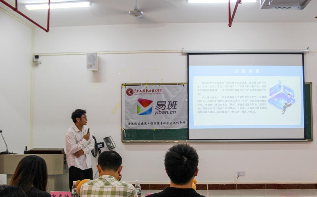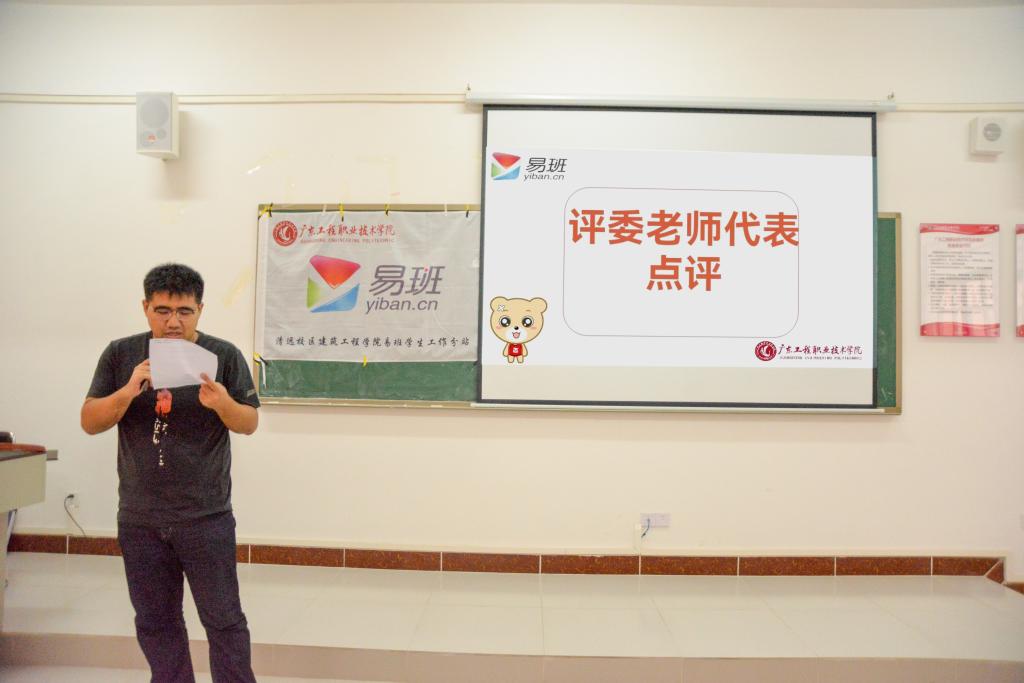 为进一步提升我校易班技术创新能力,持续推进网络思想政治教育阵地建设,2023年5月26日中午,由学生工作部(招生与就业指导中心)主办,学校易班发展中心、建筑工程学院易班学生工作站承办的第八届网络文化节之易班技术创新创意大赛决赛在省职教城(清远)校区Q1-212举行。出席本次决赛的领导老师有建筑工程学院党委书记钟婷、副书记晋保山、易班指导老师邓腾飞及机电工程学院易班指导老师刘莉。宣传(武装)部赵罡宇、财经学院易班指导老师李翔、人工智能学院易班指导老师史嘉欣、机电工程学院辅导员薛国梁以及建筑工程学院辅导员王泽担任决赛评委。
